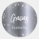 Sticker Rond Quinceanera gracias argent nom de la parties scint