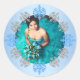 Sticker Rond Quinceañera Ice Blue Silver Winter Snowflake