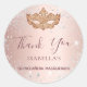 Un autocollant pour une Quinceañera girly et glamour, fête du 15e anniversaire. Un arrière - plan d'or rose avec des éclats d'or rose et de faux argent rose et un masque de mascarade. Personnalisez et ajoutez un nom. Le texte : le Merci est écrit en or rose foncé avec un grand script de style à la main moderne.