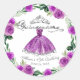 Sticker Rond Quinceanera Purple Argent Gown Floral