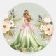 Sticker Rond Quinceanera verte et rose fête d'anniversaire