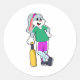 Sticker Rond Rabbit au cricket avec chauve-souris de cricket