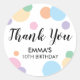 Cet autocollant amusant de fête d'anniversaire comporte un motif à confettis arc-en-ciel dessiné à la main, ainsi que la typographie "Merci !" et le texte personnalisé. Personnalisez le texte et faites-le vous-même !