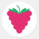 Do you like fun stickers? This sticker has a graphic of a pink raspberry with a green stem.