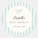 Rayures Bleu Poussière Élégant Vintage Garçon Baby Shower autocollants ronds avec un mignon nœud bleu