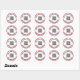 Une image d'affichage se trouve au milieu de l'autocollant. Vous pouvez le remplacer par votre code QR. Il existe deux lignes de texte d'affichage noir que vous pouvez modifier pour afficher un message personnalisé. Ces autocollants ont du texte noir dans un cercle blanc. L'autocollant a une bordure rouge.