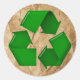 Une simple déclaration vraiment, papier marron effondré avec le symbole de recyclage. Moyen facile de vous rappeler de faire votre part.