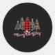 Sticker Rond Red Black Green Buffalo Plaid Merry Christmas Tree