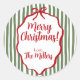 Sticker Rond Red Bow Christmas, Green Stripe Custom