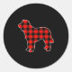 Sticker Rond Red Buffalo Plaid Pajama Doodle Christmas Dog Love