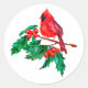 Sticker Rond Red Cardinal Bird sur Holly Berry Branch