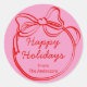 Spread holiday cheer in the cutest way with this custom pink holiday sticker featuring a festive red bow and “Happy Holidays” message. Personalized with your own message and name, this round sticker adds a sweet and stylish touch to holiday cards, gift wrap, treat bags, and more.