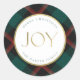 Introduire l'autocollant rond Plaid Tradition Joy avec un design plaid rouge et vert classique, qui évoque instantanément l'atmosphère cosy et traditionnelle de la saison des Fêtes. Les autocollants ajoutent une touche délicieuse à vos enveloppes de cartes de Noël. Le mot Joy est imprimé en feuille d'or simulée, et votre nom suit la courbe de l'autocollant dans une police lisible élégante.