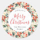 Stickers classiques ronds Red Christmas Holly Berries. sticker rond de vacances avec un motif de canneberge sur un arrière - plan neutre. Le design présente l'accueil "Joyeux Noël" dans une police de caractères élégante avec des feuilles verts et des baies rouges, créant une ambiance de vacances joyeuse. Facile à personnaliser avec votre nom de famille.