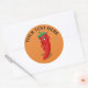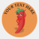 Un personnage de dessin animé rouge et poivre chaud. Design original. Image, texte et couleur arrière - plan peuvent être customisés pour créer un produit unique. Une suggestion d'un de mes clients : "Ce sticker personnalisable est parfait pour le thème de la fiesta de notre mariée. Nous fabriquons des bouteilles de sauce chaude et utilisons ces autocollants sur les étiquettes suspendues. Si mignon !"