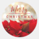 Sticker Rond Red Poinsettias Joyeux Noël Bokeh Lumières
