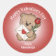 Ours mignon avec un autocollant rond "Heureuse Sainte-Valentin" rose rouge avec texte personnalisé. Ajoutez votre nom en bas. Ils fabriquent de superbes autocollants pour vos valentines ou vos étiquettes de sacs cadeaux/cadeaux. Ils sont parfaits pour la fête en classe de votre enfant. Communiquez avec moi pour obtenir de l'aide sur vos personnalisations ou pour demander des produits Zazzle supplémentaires pour votre Saint-Valentin cette année.