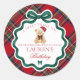 Sticker Rond Red Tartan Plaid Christmas Bear Birthday Favor