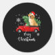 Sticker Rond Red Truck Merry Christmas Tree Golden Retriever Ch
