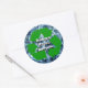 Rappel Sticky ! Promouvoir un message "vert" sur cet autocollant modèle rond avec un arrière - plan papier broyé bleu. Le texte est centré dans le symbole vert Mobius Loop recycle. Gardez ce message de l'environnement ou remplissez le bloc modèle avec vos mots. Ou cliquez sur "Customiser" pour sélectionner un style de police, une taille et une couleur que vous préférez. L'ensemble du design est personnalisable.