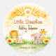 An elegant sunshine safari design featuring a refined golden sun paired with soft jungle-inspired details. Warm yellow tones blend with natural earthy hues to create a balanced and sophisticated aesthetic. The clean composition and subtle safari accents deliver a modern yet timeless look, perfect for a stylish baby shower celebration inspired by warmth and adventure.
