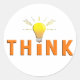 Un design simple qui dit "Pensez" avec une ampoule pointillant la lettre "I" en jaune et orange. Il y a des lignes ondulées autour de l'ampoule qui pourraient sans doute représenter les cheveux impétueux d'Albert Einstein.
