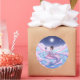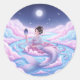 Un autocollant fantaisiste avec une sirène coréenne dans un beau bok de main, assis gracieusement dans une magique rivière de bonbons en coton. Elle tient un petit miroir qui reflète la lune brillante et les étoiles brillantes du ciel nocturne.
