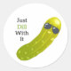 Ceci est un autocollant avec le jeu de mots "Just Dill With It" écrit à côté d'un cool, cornichon de dessin animé.