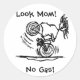 Un joli croquis au crayon en vert d'un cycliste qui survole une roue. Le texte dit : "Regarde maman ! Pas d'essence !" Un cadeau amusant pour votre cycliste favori ou ami respectueux de l'environnement - ou peut-être pour vous-même. Le plaisir du vélo avec un mode de vie sain et sauver le thème du monde.