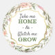 "Take Me Home & Watch Me Grow" autocollant rond qui peut être utilisé pour de petits pots de fleurs, cactus, succulents ou sacs avec des graines. Idéal pour un baby shower verdoyant, arroser, douche nuptiale ou une autre occasion.