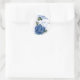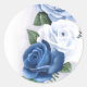 De délicates roses bleues et blanches aux accents de style Bridgerton Regency entourent deux camées classiques d'une femelle et de l'autre mâle, tous dressés contre un arrière - plan blanc immaculé.