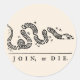 Join, or Die est un célèbre dessin animé politique créé par Benjamin Franklin et publié pour la première fois dans sa Pennsylvania Gazette le 9 mai 1754. Le dessin est apparu avec l'éditorial de Franklin sur "l'état désuni" des colonies, et a contribué à faire valoir son point de vue sur l'importance de l'unité coloniale. À cette époque, il y avait une superstition selon laquelle un serpent qui avait été coupé en morceaux reviendrait à la vie si les morceaux étaient assemblés avant le coucher du soleil. (Wikipedia)