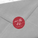 Autocollant "Save the Date" élégant avec les mots "Save the Date" dans un script cursif détendu en blanc sur une couleur de fond modifiable (cliquez sur Personnaliser pour y accéder).