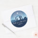 This beautiful blue drawing of the nativity scene is a gorgeous religious Christmas sticker or gift label for a devout family. Unto us a child is born. Send holiday blessings with this Christian gift.