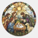 Sticker Rond Religious Stained Glass Nativity Holiday