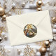 This holiday sticker features stained glass Nativity scene. The perfect envelope seal for holiday or religious cards.