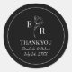 Sticker Rond Remerciement de mariage à monogramme floral noir