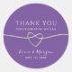 Autocollant de remerciement de mariage violet simple, élégant, minimaliste, avec coeur de corde argentée.