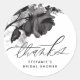 Envoyez vos remerciements avec cette étiquette personnalisable pour une douche de mariée. Elle présente des roses noires à l'aquarelle. Personnalisez en ajoutant vos détails. Cet autocollant de remerciement floral noir est parfait pour tous les événements.