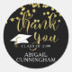 Confettis dorés et écriture manuscrite REMERCIEMENTS avec le nom du diplômé et l'année de remise de diplôme sur un fond noir dont la couleur est modifiable. Utilisez comme autocollants pour les cadeaux de fête de remise de diplôme ou comme sceaux de remerciement sur les enveloppes de papeterie. Contactez le designer si vous souhaitez que ce design soit modifié ou sur un autre produit.