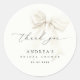 Autocollant remerciement élégant avec nœud blanc pour une baby shower, avec une typographie moderne sur un fond propre et minimal. Parfait pour sceller des enveloppes, décorer des sacs de faveur ou ajouter une touche soignée à des cadeaux pour une baby shower, une fête de mariage ou une soirée entre filles. Idéal pour des célébrations sur le thème du nœud ou en noir et blanc, cet autocollant rond polyvalent se coordonne parfaitement avec les invitations, les étiquettes-cadeaux et autres articles de papeterie de fête assortis.