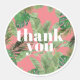 Une illustration aquarelle de feuilles tropicales vertes sur fond rose saumon ajoute une esthétique chic à ces autocollants de remerciement modernes. Idéal pour sceller des enveloppes ou des colis, pour la correspondance de remerciement aux clients, ou pour un usage personnel. Illustration et conception © 1201AM Design Studio | www.1201am.com
