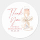 Ces autocollants de remerciement pour la fête de mariage chic présentent un nœud en satin blanc crémeux et un verre pétillant de prosecco rosé — le mélange parfait d'élégance et de célébration.