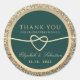 Exprimez votre gratitude avec une touche d'opulence et de sophistication en utilisant nos autocollants de remerciement de mariage chic et luxueux. Dotés d'une riche teinte verte émeraude rehaussée d'un or scintillant étincelant, chaque autocollant dégage de l'élégance et du glamour. Le cœur de corde romantique ajoute une touche fantaisiste mais raffinée, symbolisant l'amour durable partagé lors de votre jour spécial. Avec leur design simple mais captivant, ces autocollants sont le moyen idéal pour exprimer votre sincère appréciation à vos invités, laissant une impression durable de votre célébration inoubliable.