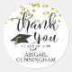 Confettis dorés et écriture manuscrite REMERCIEMENTS avec le nom du diplômé et l'année de fin d'études en noir. Utilisez comme autocollants pour les fêtes de fin d'études ou comme sceaux de remerciement sur les enveloppes de papeterie. Contactez le designer si vous souhaitez que ce design soit modifié ou sur un autre produit.