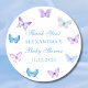 Sticker Rond Remerciements pour la Baby Shower Papillon Rose Bl