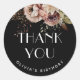 Ajoutez la touche finale parfaite à vos faveurs de fête avec ces autocollants de remerciement Sweet Sixteen inspirés du style bohème. Avec un fond noir moderne, une écriture élégante et des florales aquarelles douces avec des feuilles automnales terreuses, ils sont idéaux pour une célébration d'anniversaire Sweet 16 en automne. Parfaits pour sceller des enveloppes, décorer des sacs cadeaux ou personnaliser des faveurs de fête, ces autocollants personnalisables allient praticité et style. Un choix magnifique pour un Sweet Seize bohème, un anniversaire automnal ou un thème floral rustique. Ils se marient parfaitement avec des invitations, assiettes et fournitures de fête assorties.