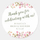 Ajoutez une touche charmante à vos cadeaux de fête de mariage avec ces autocollants remerciements floraux élégants, mettant en vedette des fleurs délicates à l'aquarelle et une typographie script stylée ; parfaits pour sceller les sachets de cadeaux, les boîtes à cadeaux ou les enveloppes, ces autocollants ronds personnalisés créent une touche finale chaleureuse et attentionnée pour toute célébration de mariage - idéaux pour les mariées qui aiment les détails romantiques et inspirés de la nature et qui veulent laisser une impression durable à leurs invités.