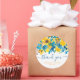 Sticker Rond Remercier script rustic jaune tournesols bleu