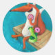 Sticker Rond Renard et poulet amicaux mangeant des beignes